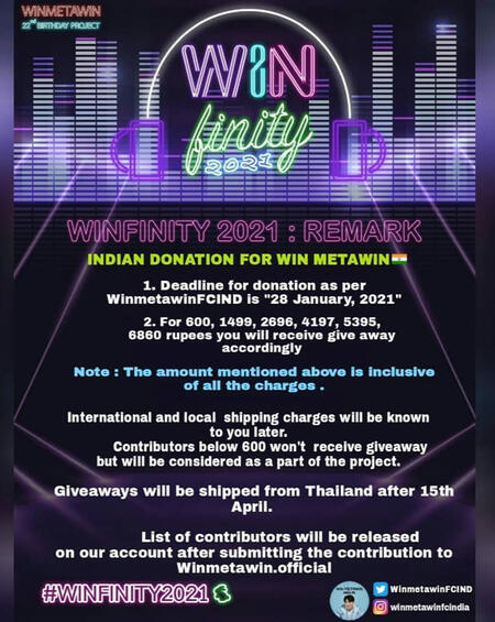 Hello, this is Win Metawin India FanClub Projects & Donation Support. We strive to promote the Thai Actor and Superstar Win Metawin effectively through our projects and endeavors. We appreciate each and every support we receive from Indian and International Snowballpowers as well as fans of Win Metawin, without whom, our projects would remain incomplete.