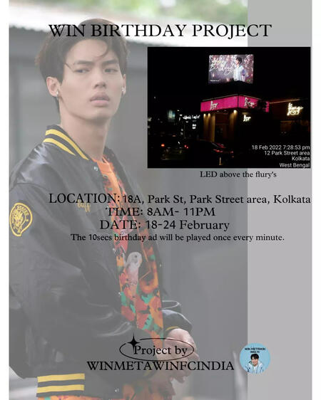 6.Our 23rd Birthday Project for Win : Win Metawin became the First Thai Artist to have a Birthday LED Ad in India (Park Street, Kolkata, West Bengal).